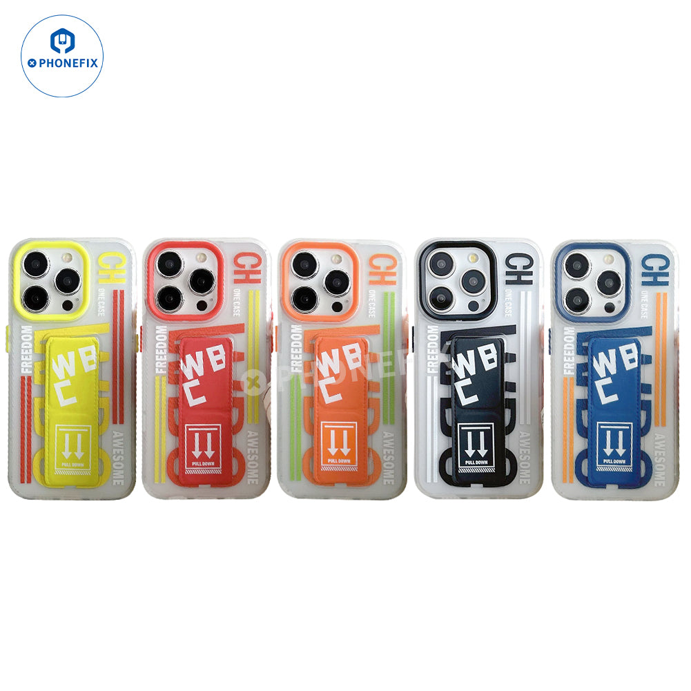 Push-pull folding stand frosted transparent protective cover suitable for iPhone 16/16 Plus/16 Pro/16 Pro Max. PC+TPU heat dissipation anti-wear phone case with push-pull bracket for iPhone 16 series.