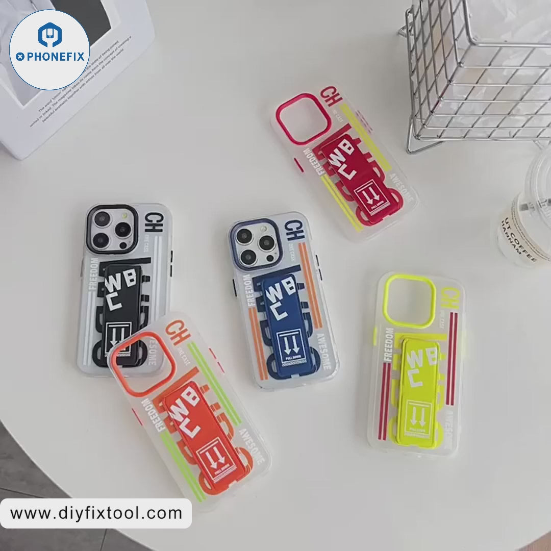 1. Creative push-pull folding stand frosted transparent protective cover for iPhone 16 / 16 Plus / 16 Pro / 16 Pro Max.