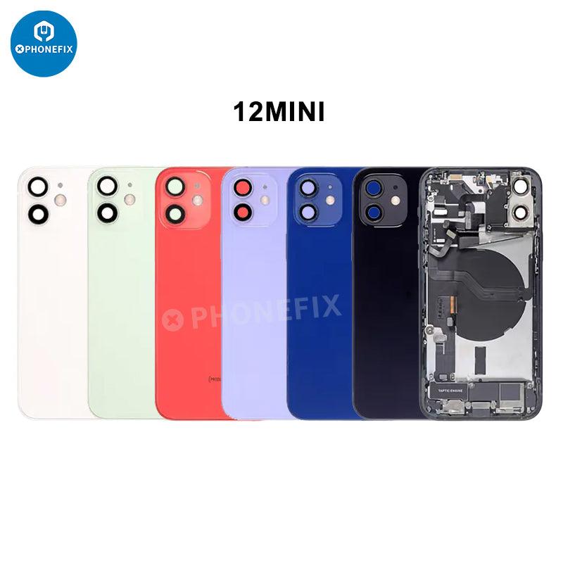 iPhone 12/12 Mini rear housing full assembly: Black, White, Red, Green, Blue, Purple.