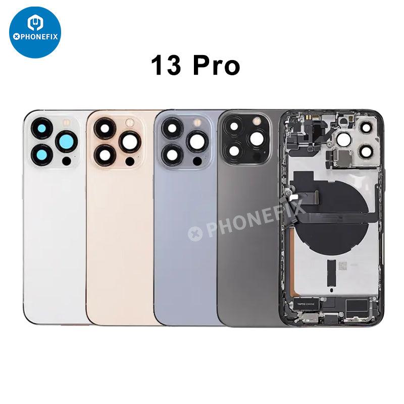iPhone 13 Pro/13 Pro Max rear housing full assembly: Sierra Blue, Silver, Gold, Graphite, Green.