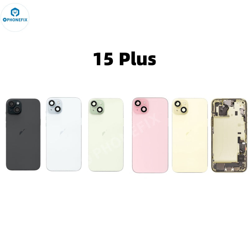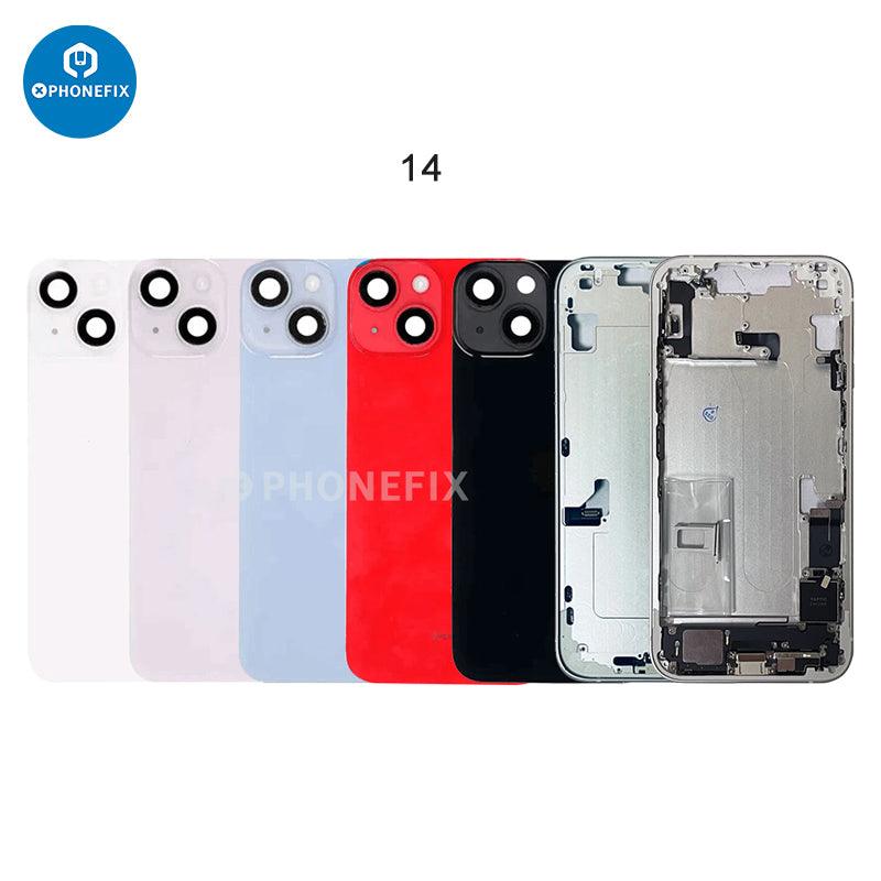 iPhone 14/14 Plus rear housing full assembly: Blue, Purple, Yellow, Black, Starlight, Red.
