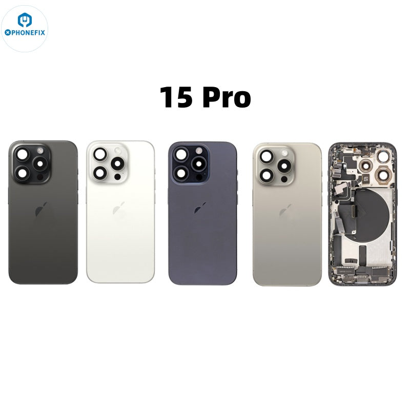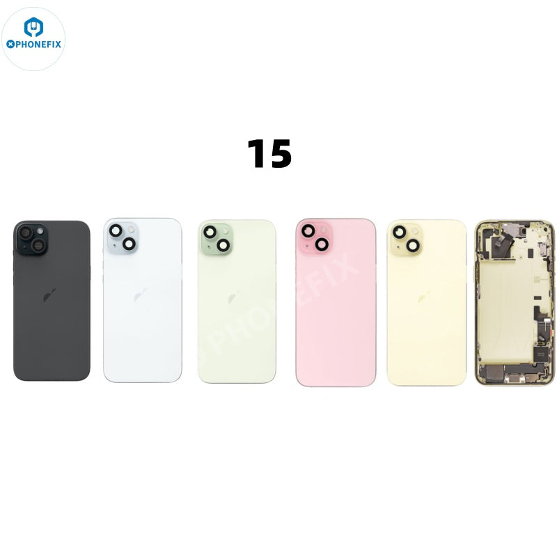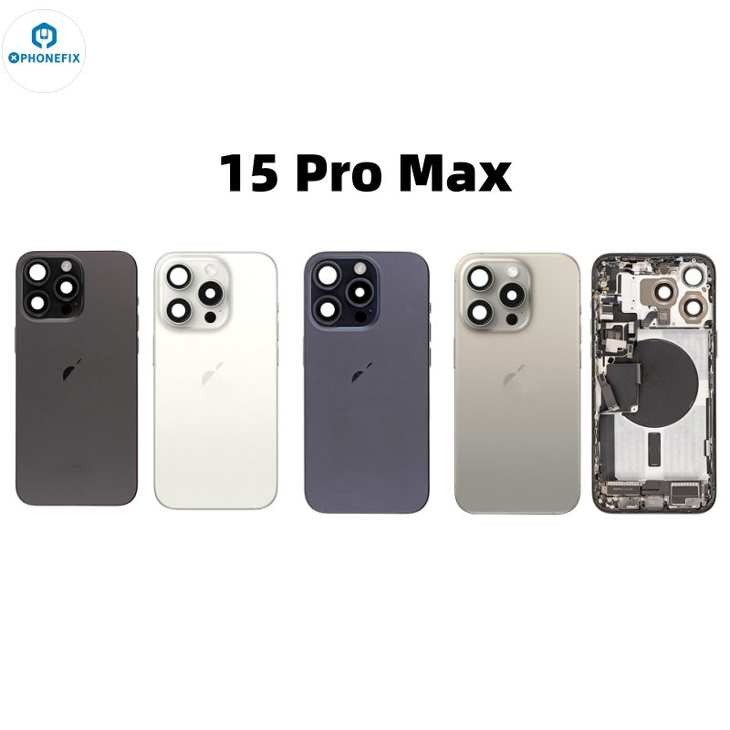 Reparment parts for iPhone 8-15 Pro Max Rear Housing With Small Parts Full Assembly. Original iPhone back cover full assembly with Apple logo to replace damaged cracked or scratched iPhone rear housing.