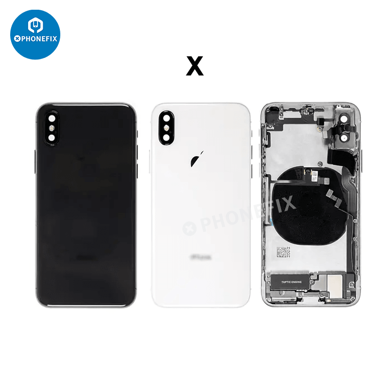 1. iPhone rear housing full assembly includes middle frame, volume/power button flex cable, louder speaker, rear-facing camera retaining bracket, side keys retaining bracket, charger port assembly, just without iPhone battery and iPhone rear camera.