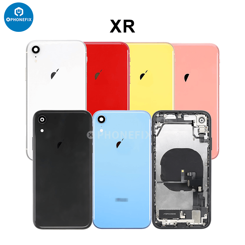 iPhone XR rear housing full assembly: Black, White, Blue, Yellow, Red, And Coral.