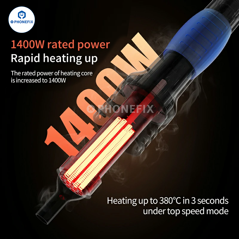 1. Heating core with 1400W rated power, heating up to 380°C in 3 seconds under top speed mode.