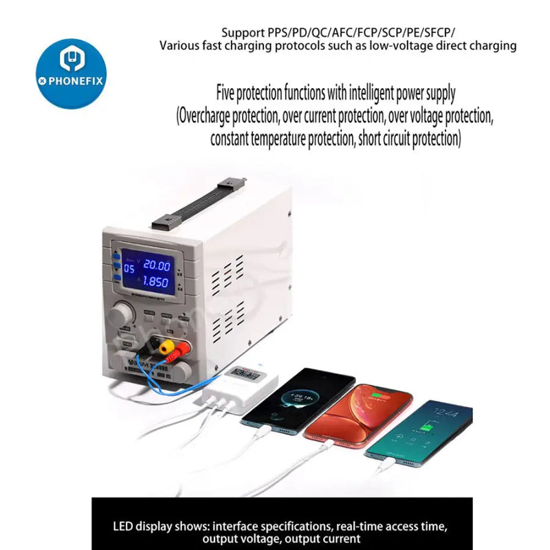2. Support multiple fast-charging protocols such as PPS/PD/QC/AFC/FCP/SCP/PE/SFCP/low-voltage direct charging.