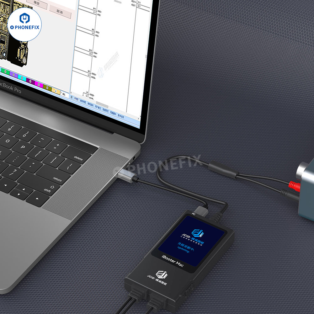1. JCID Current Analyzer iBooter Mac with MagSafe cable (L-tip, T-tip and USB-C interface) for 2008-2024 Macbook repair.