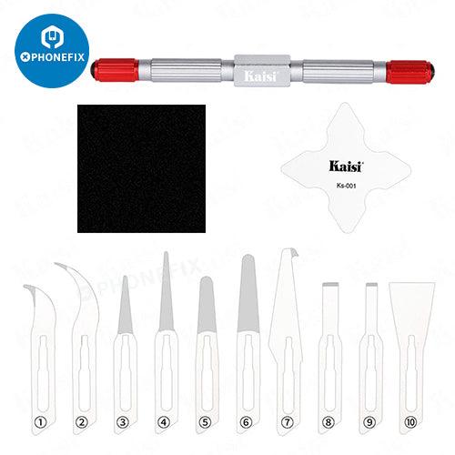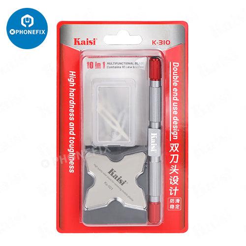 Kaisi K-310 10-in-1 Double-Headed Crowbar High Toughness Blade Set for Mobile Phone Repair. Universal Mobile Phone Motherboard CPU IC Removal Blade BGA Chip Removal Graver for Phone BGA Chip Remover Knife disassembly tool.