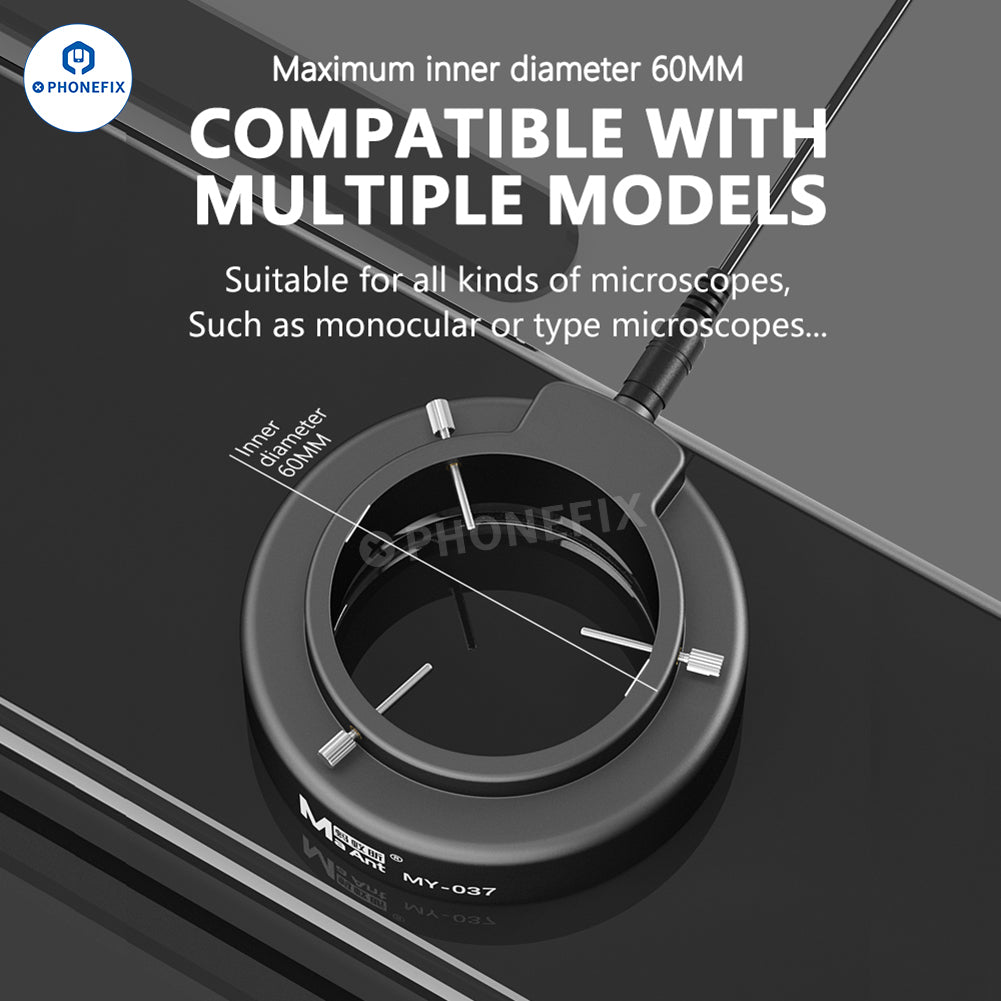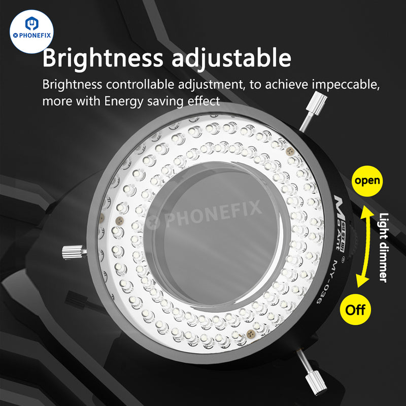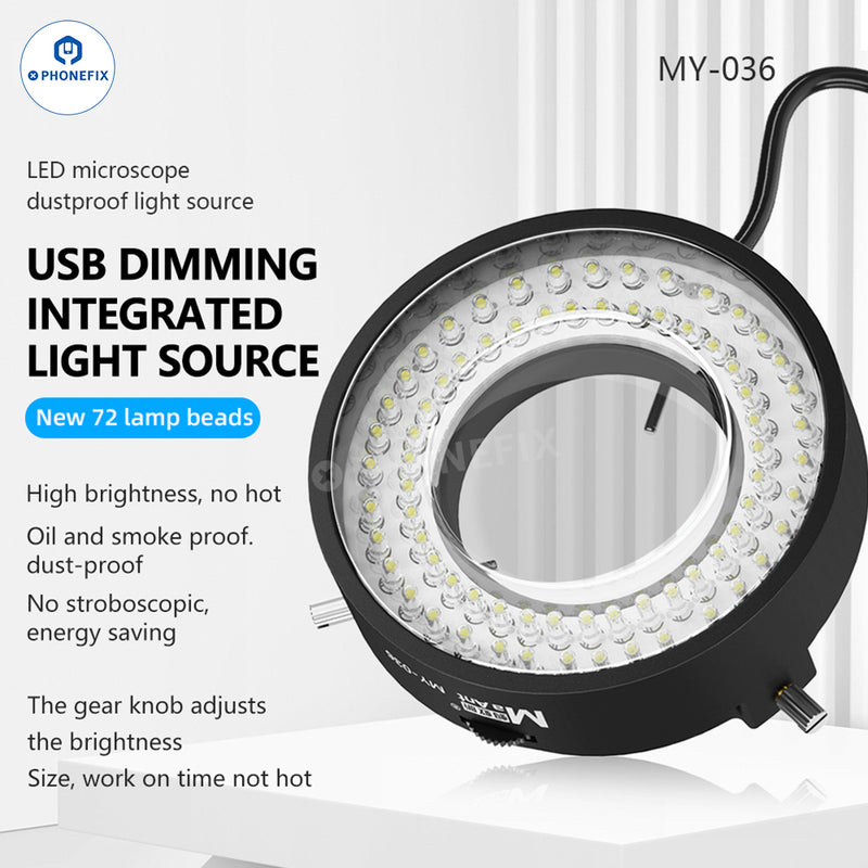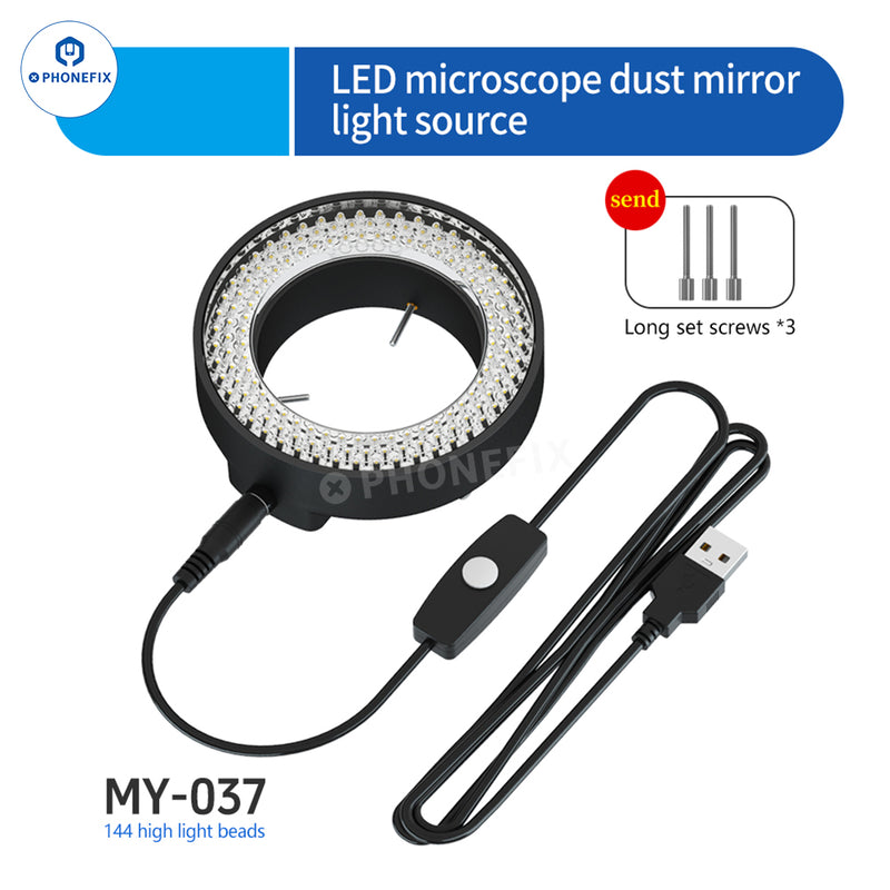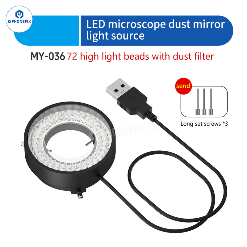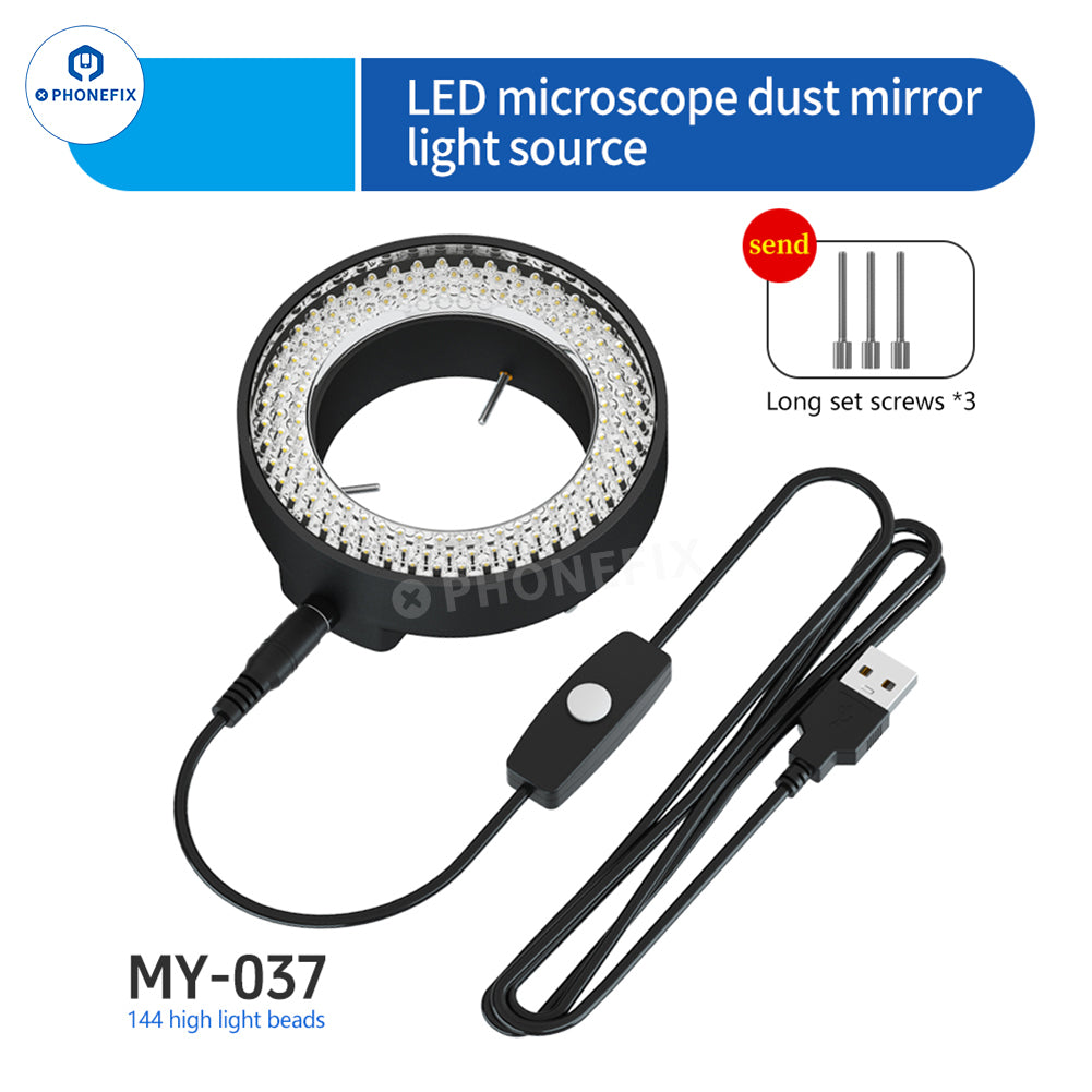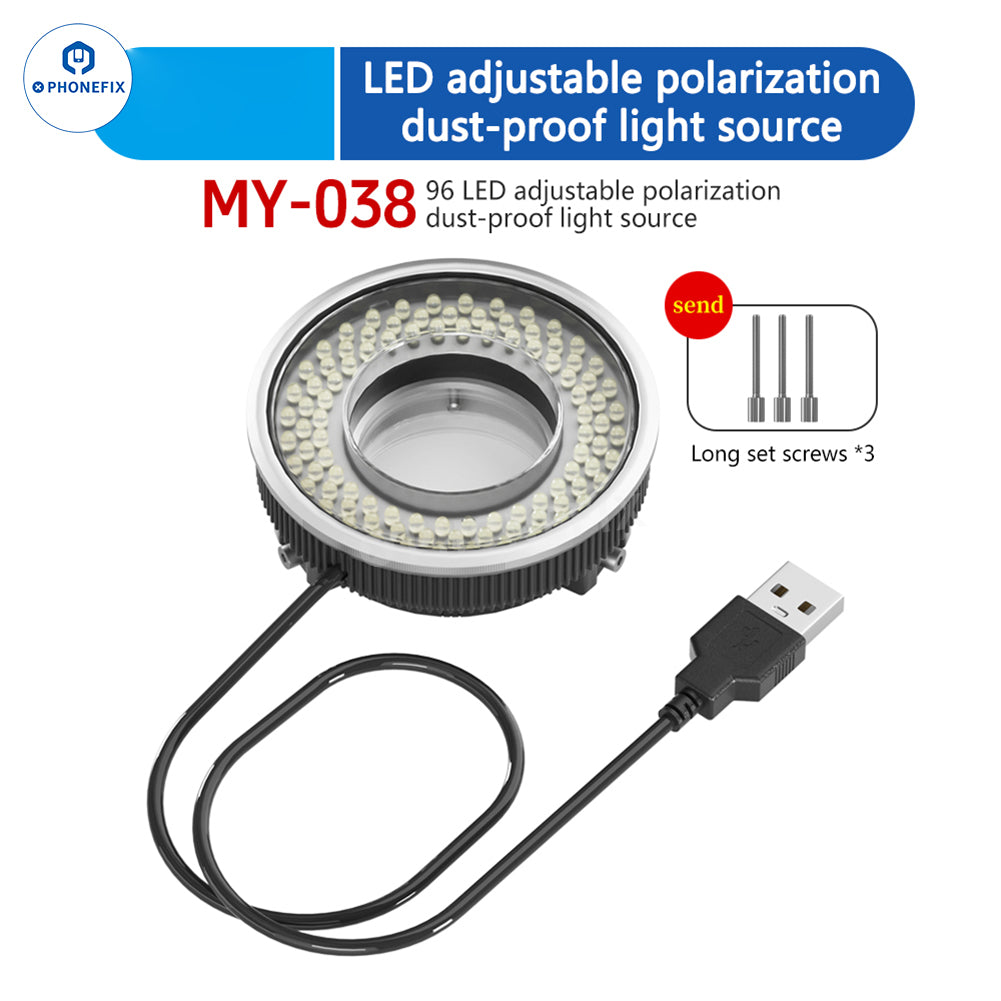 MaAnt MY-038 96 LED Polarized Light and MY-036 MY-037 72/144 LED high brightness spotlight beads for all microscopes or industrial cameras. MaAnt MY-036 MY-037 MY-038 microscope ring lamp, USB adjustable integrated light source, high brightness without getting hot, oil and smoke proof.