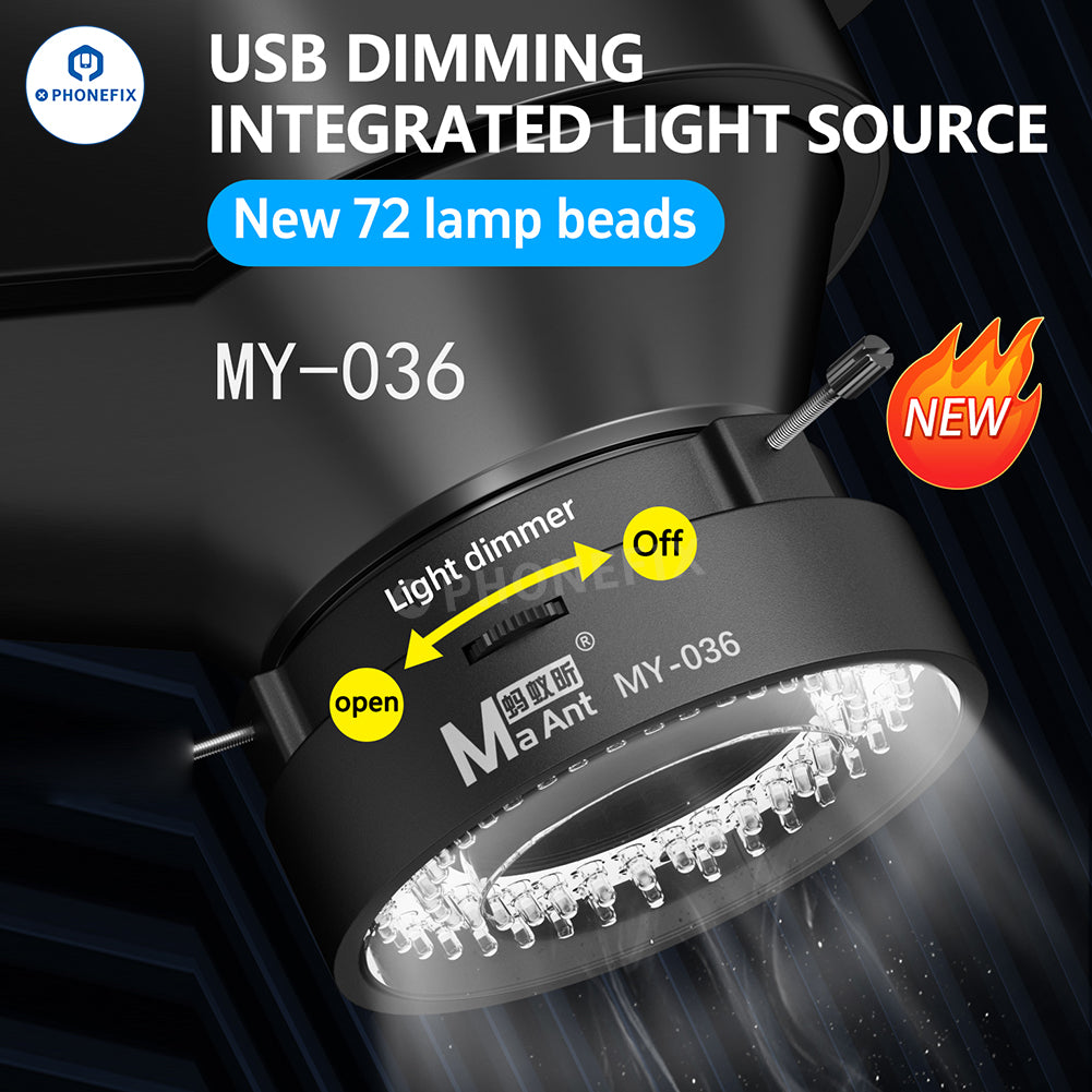 1. MAANT microscope LED ring light source, USB dimming integrated light, high brightness, no heat after long-term use, no flicker, stable light source.