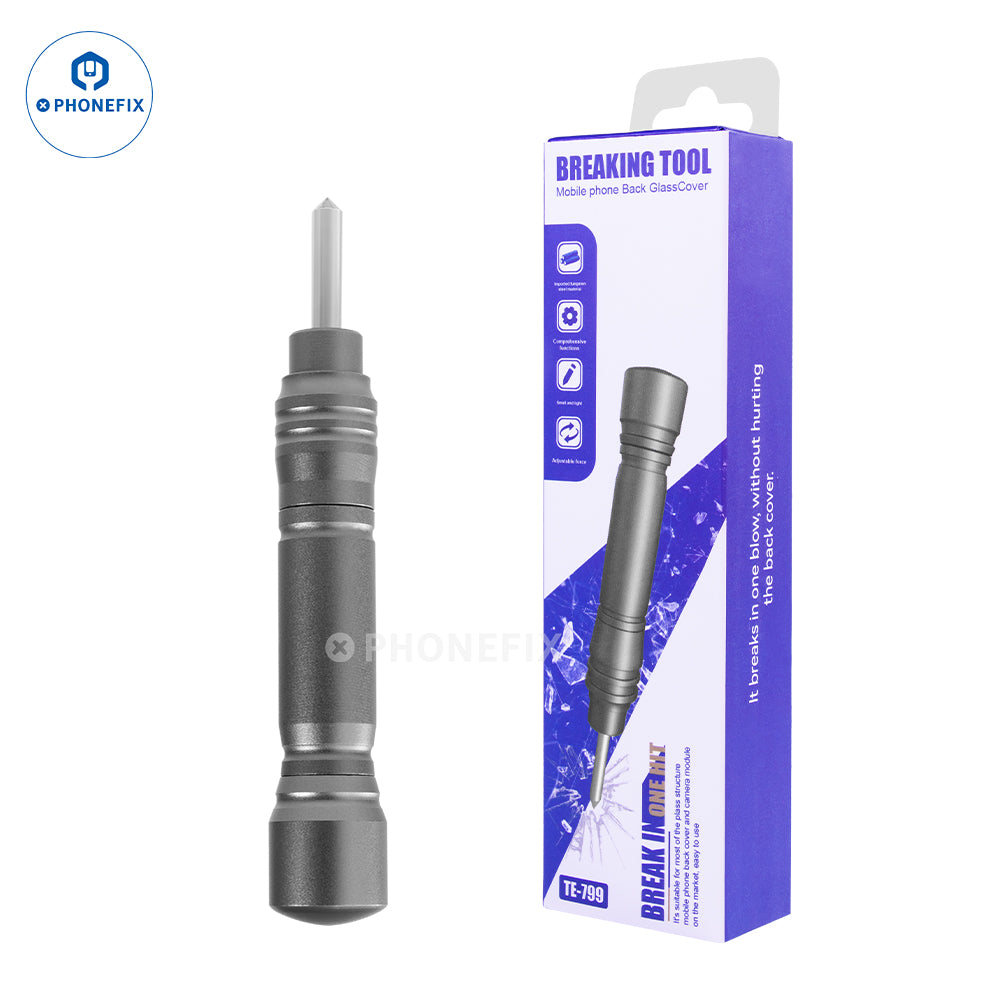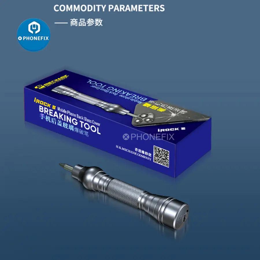 Mechanic iRock 5 boulder iRock back glass breaking pen for iPhone X-16 Pro Max rear glass replacement repair. TE-799 mobile phone back glass breaking pen for iPhone back cover glass, camera glass, and frame blasting and disassembly repair.