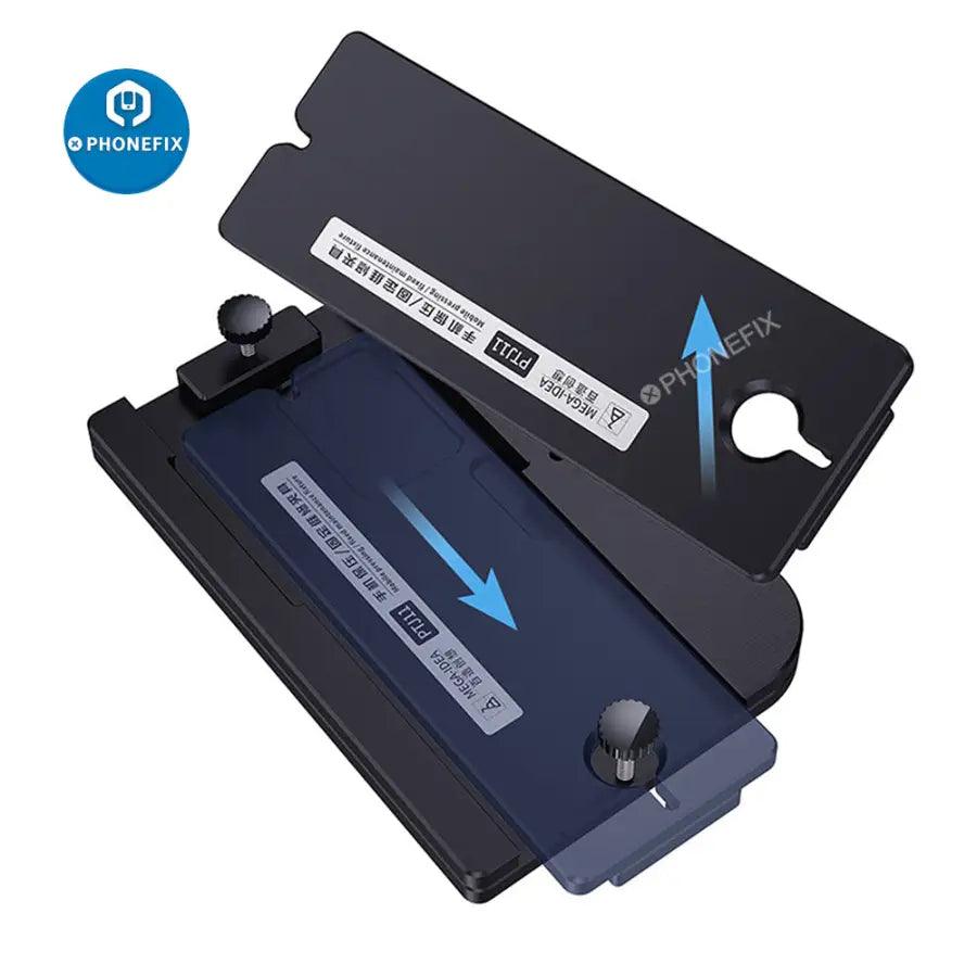 Qianli MEGA-IDEA PTJ11 multifunction back cover repair jig fixture for support for all cell phone models, MEGA PTJ11 housing cover fixture holder for iPhone Huawei Samsung back cover fixing repair. It is perfect for LCD screen press fit, warping repair, degumming repair and back cover dismantle.