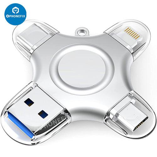 Versatile Compatibility: Multifunctional 4 IN 1 iPhone Photo Stick fit all your devices with FOUR ports: Lightning connector is for iOS devices; Micro USB connector is for Android phones and Camera; USB 3.0 connector is for computers/Mac; Type-C connector is for Macbook Pro and other USB C devices(Can work with iPad Pro USB C port ).