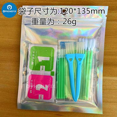 Complete and sufficient phone cleaning set: The cleaning kit comes with 28 pieces of items, 15 pieces of foam swabs, 5 pieces of dust removal stickers, 2 nylon brushes, 10 pieces of the alcohol wipes and 1 piece of microfiber cleaning cloth, complete and sufficient for your repeated uses.