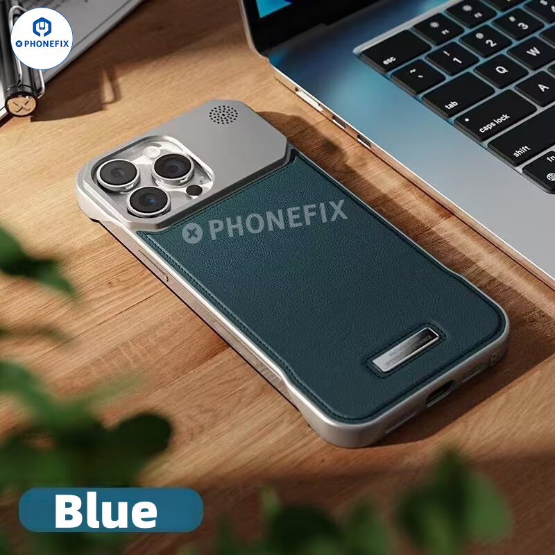 Metal and leather 2-in-1 magnetic phone case to protect your iPhone 11-17 Pro Max. Premium vegan leather and a magnetic metal frame, drop-proof and fingerprint-resistant, effectively protecting the iPhone's camera, back glass, and screen. A built-in strong magnetic ring ensures perfect MagSafe compatibility, allowing for easy charging without removing the case. Suitable for iPhone 11/12/13/14/15/16/17 Pro Max.