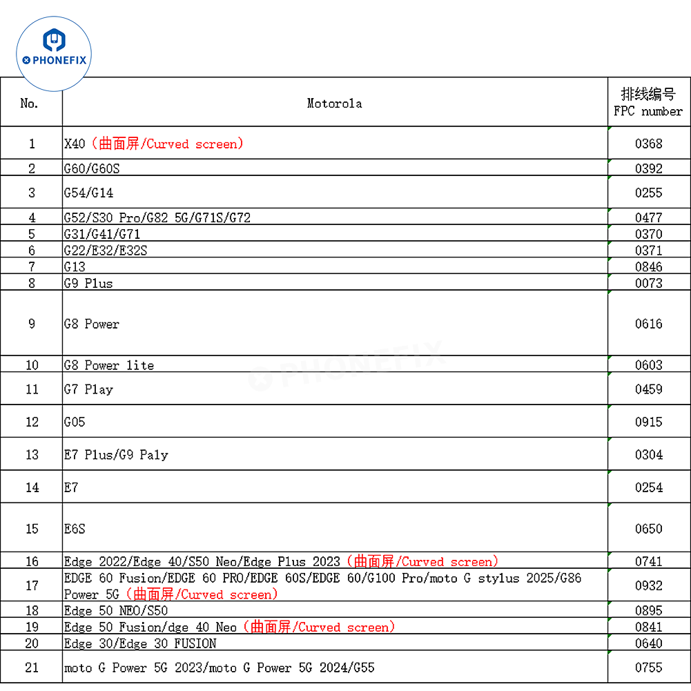 3. YCX M9/M960 screen tester + EDP board standard set. Pls choose 5pcs FPC for free (not including iPhone Pro series).