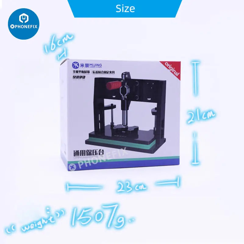 Mijing BY-20 Features: Mijing BY-20 Mobile Phone Screen/Back Cover Universal Maintenance Pressure Retaining Fixture. Applicable to the assembly of rear shell and mobile phone screen removal. Suitable for both mobile / tablets. Suitable for fixed pressure holding of the screen / back cover. Working area 17 X 8.5cm.