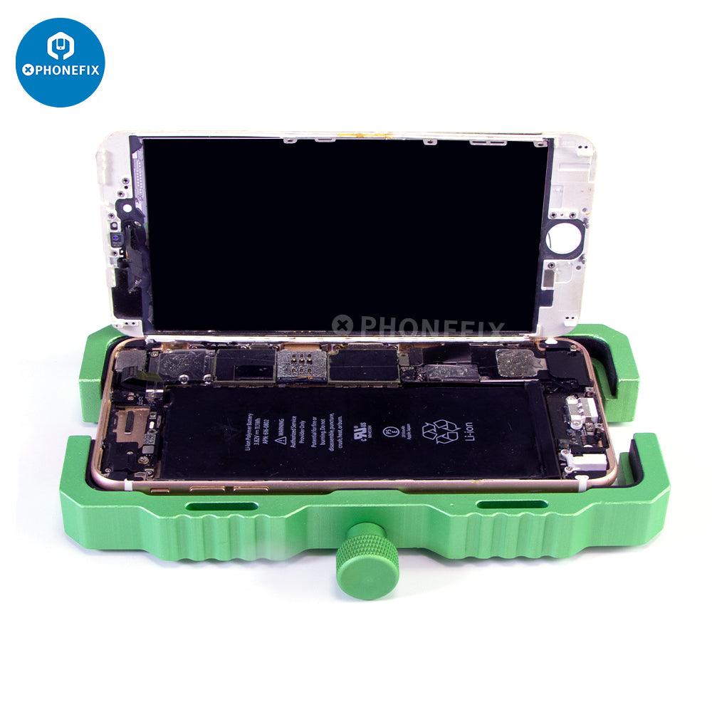 Universal aluminium alloy all-purpose LCD screen module jig holder for mobile phone OCA laminating, aluminium alloy phone screen repair holder, adjustable cell phone front outer glass lens module clamp, LCD UV glue module and glass screen holder for cell phone LCD screen repair tool