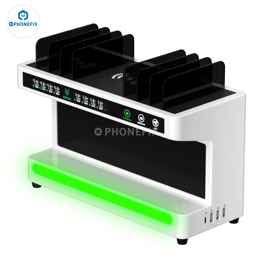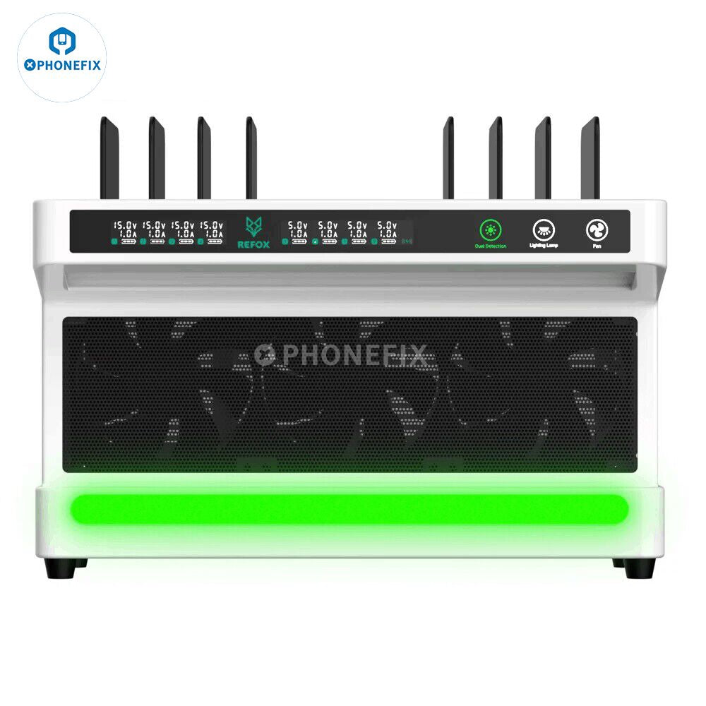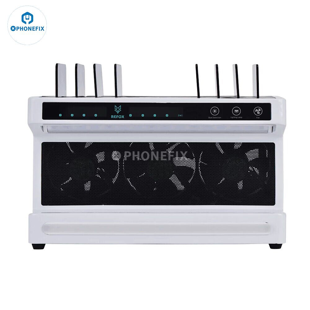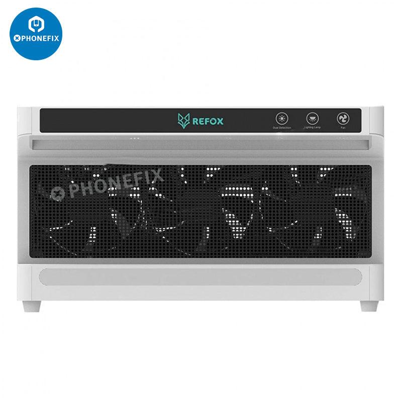 Refox DF-40 Multifunction Dust Removal Workbench for Lighting/Dust Detecting/UV Curing/ Phone Repair Soldering Tool. REFOX DF45 Desk Cleaner Pro with lighting/dust detecting cleaning/fast charging all in one mobile phone dust-free workbench. DF-40 dust-free Desk Cleaner is ideal for repairing mobile phone/tablet films or LCD screens.