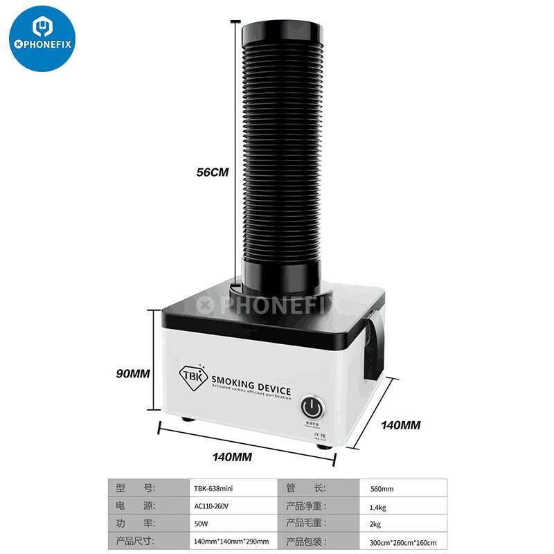 TBK-638 Mini Fume Extractor Desktop Smoke Absorber Efficient Purification Air Cleaner Laser Marking Machine With LED Light for BGA Soldering Repair. TBK 638 Mini 50W Laser Marking Soldering Smoke Purifier Fume Extractor.