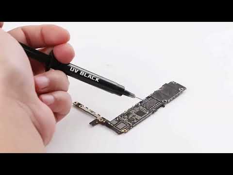 2UUL SC53 UV Green Oil PCB UV Curable Solder Mask for Mobile Phone Motherboard CPU Nand Chip Soldering Repair. 2UUL PCB UV Curable Solder Mask with 3pcs 0.6mm Super Thin Needles, 10ml UV green oil paint. Insulates printed circuit board against shorting and arcing to protect PCB traces from corrosion, and moisture, repairing PCB after soldering and rework.