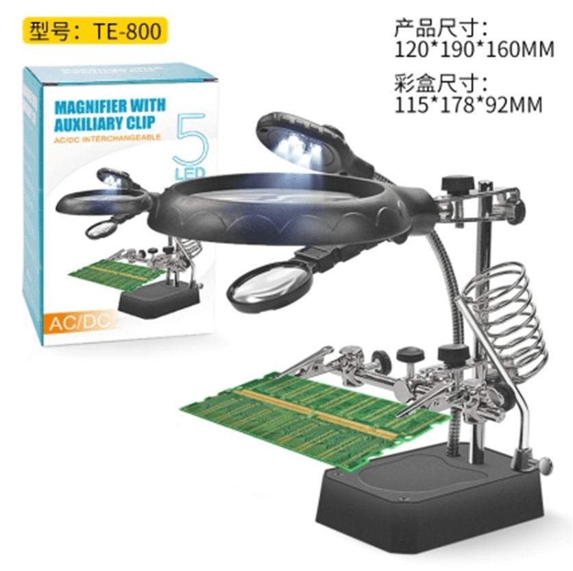 3-in-1 MG16129-C Hand Soldering Solder Iron Stand Holder Station Desktop 10 Times Welding Magnifying Glass with 5 LED and Auxiliary Clip for Mobile Phone Repair