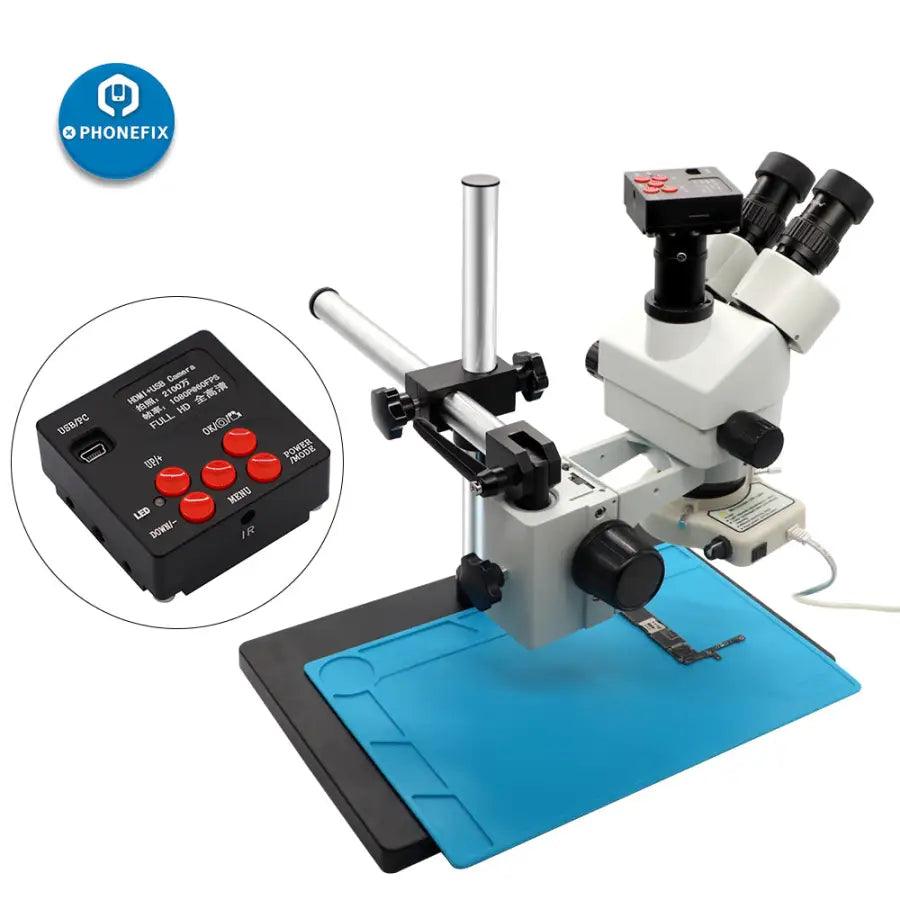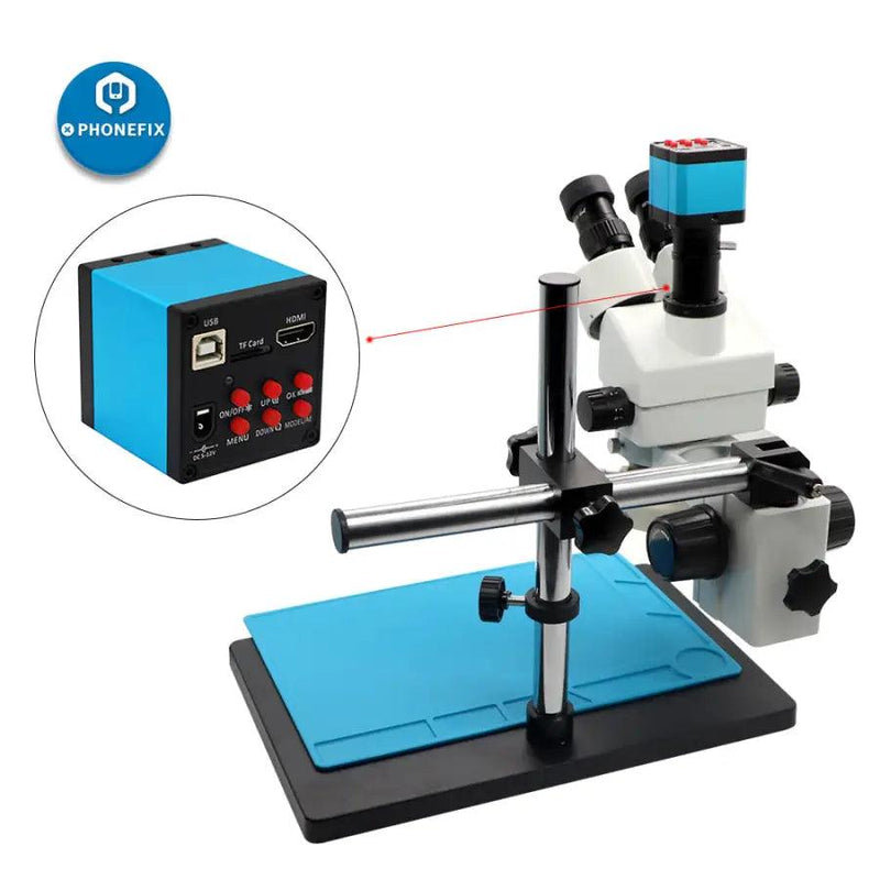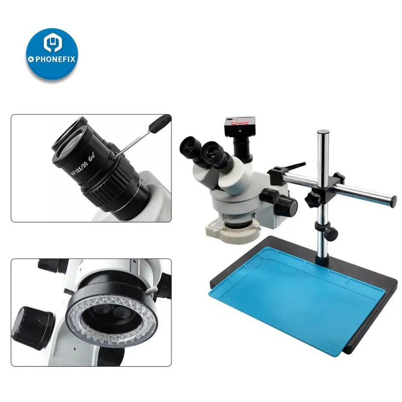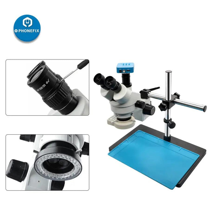3.5-90X Continuous Zoom Simul Focal Trinocular Stereo Microscope VGA/14MP/16MP/21MP HDMI Camera for Phone Soldering Microscope
