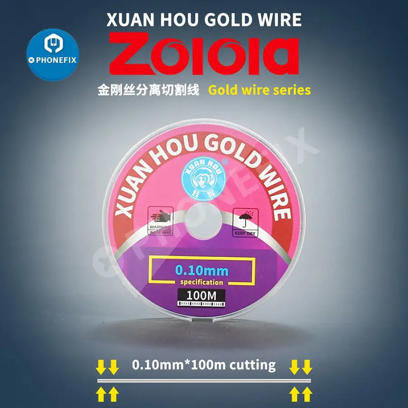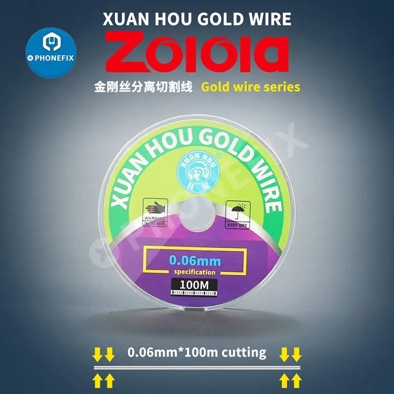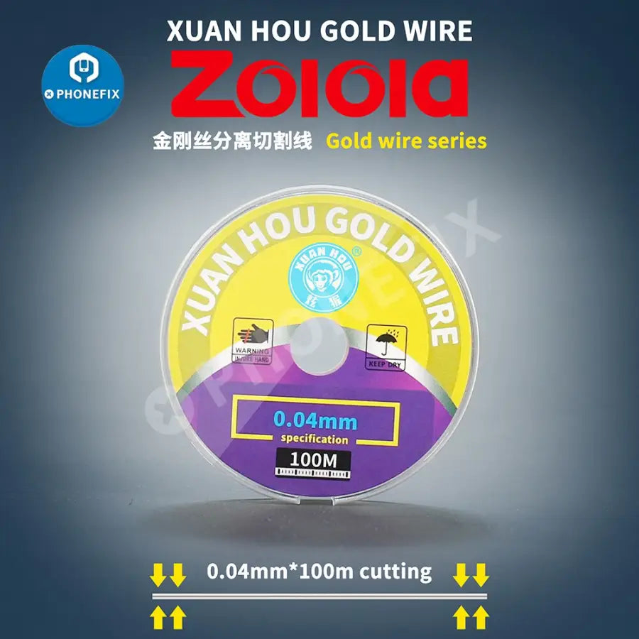 100M cutting wire suitable for LCD/OLED screen separation, high hardness carbon steel wire gold alloy cutting line, 0.028/0.04/0.06/0.1mm superfine cutting line for cell phone front glass screen separating repair tools.