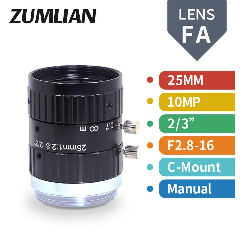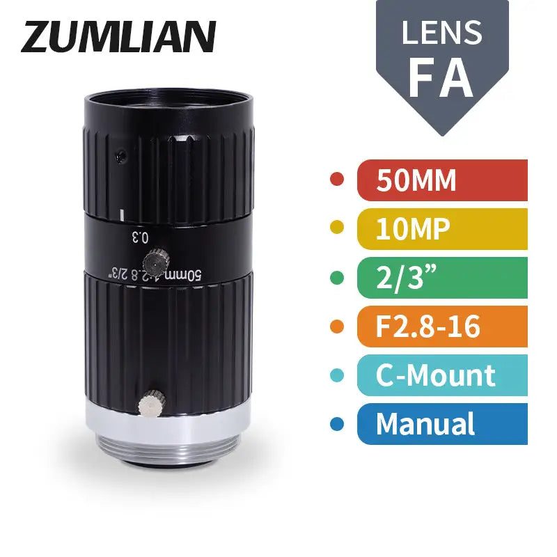 10MP 8mm-50mm Manual FA Prime Lens C-mount F2.8-16 2/3" Manual Focus Lens ITS Camera Lens, Standard FA industrial C Mount Fixed focus, Machine Vision Lens Industrial Cameras lens. 8mm, 12mm, 16mm, 25mm, 35mm, 50mm Optional.