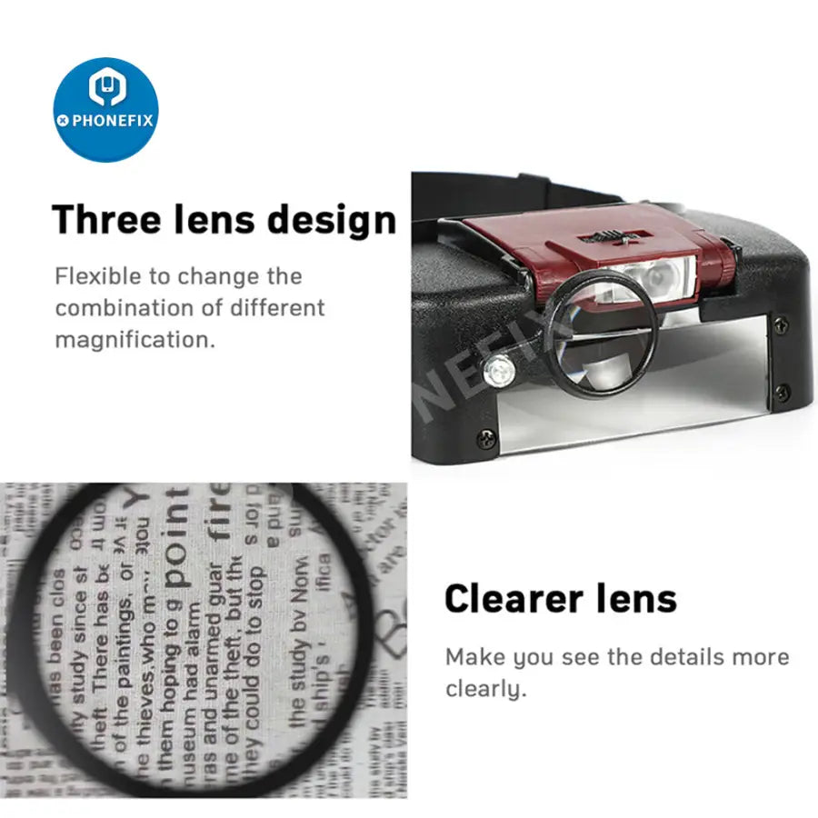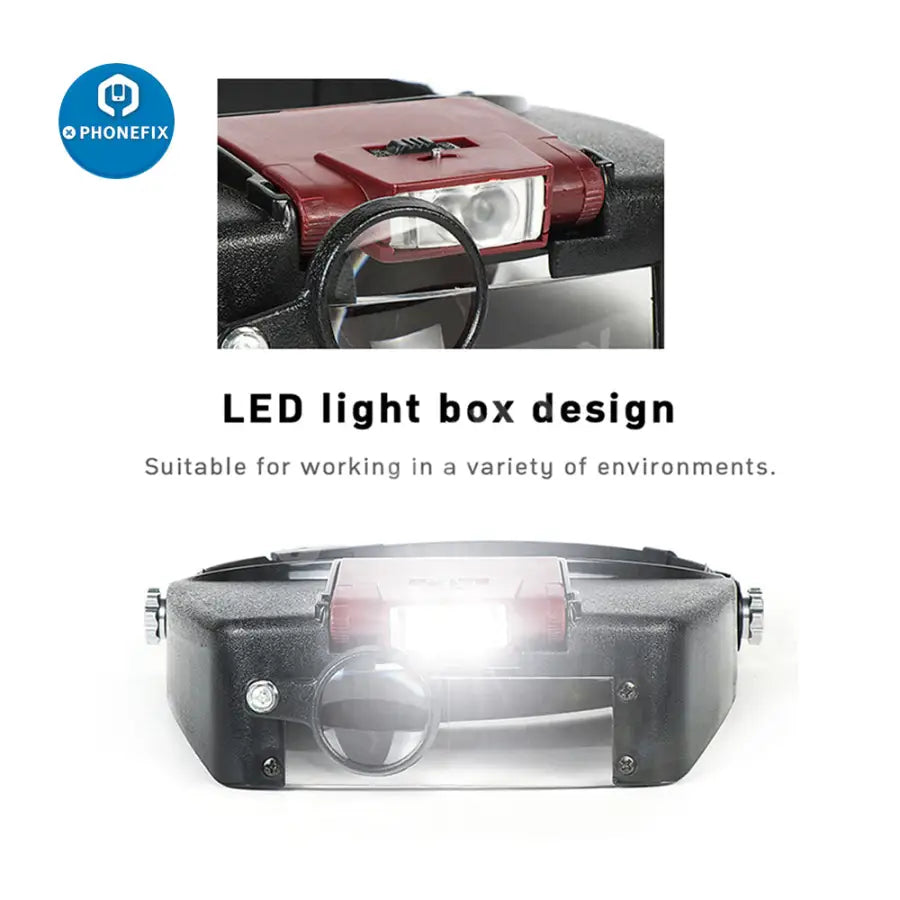 10X LED Light Loupe Helmet Style Magnifier Glass For Phone Repair