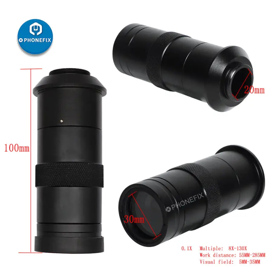 C-MOUNT Lens Specification: Working distance: 50~155mm zoom c-mount Lens Magnification Power by 8X~130X Size: 115mm(L) * 40mm(DIA)