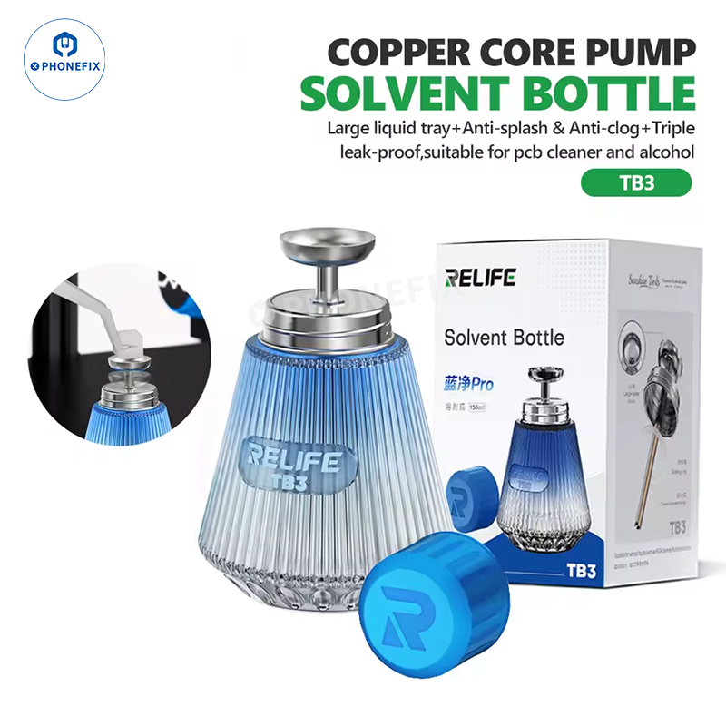 1. RELIFE TB3 Nanjing Pro Copper Core Pump Solvent Bottle: Large-capacity liquid tray, splash-proof and clog-proof, triple leak-proof design, suitable for PCB cleaners and alcohol.
