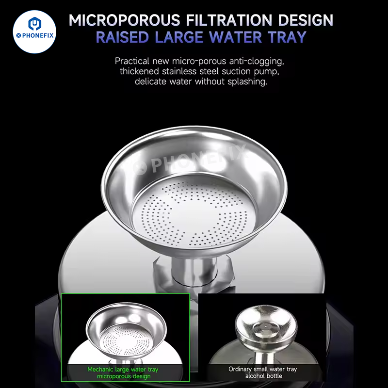 3. Microporous filtration design with a tall, large-capacity water tray; innovative microporous anti-clogging technology ensures efficient clogging and contamination prevention; smooth, non-splashing dispensing.