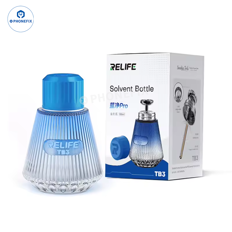 MECHANIC GL-NXT 150ml Glass Alcohol Bottle and RELIFE TB3 Solvent Bottle for storing cleaning liquids, alcohol, and other liquids. It features a press-type dispensing system and is suitable for mobile phone repair, such as cleaning the motherboard, CPU chip, screen frame, and other electronic product cleaning and repair. Press-type water dispensing, high-efficiency filtration, splash-proof, and clog-proof.