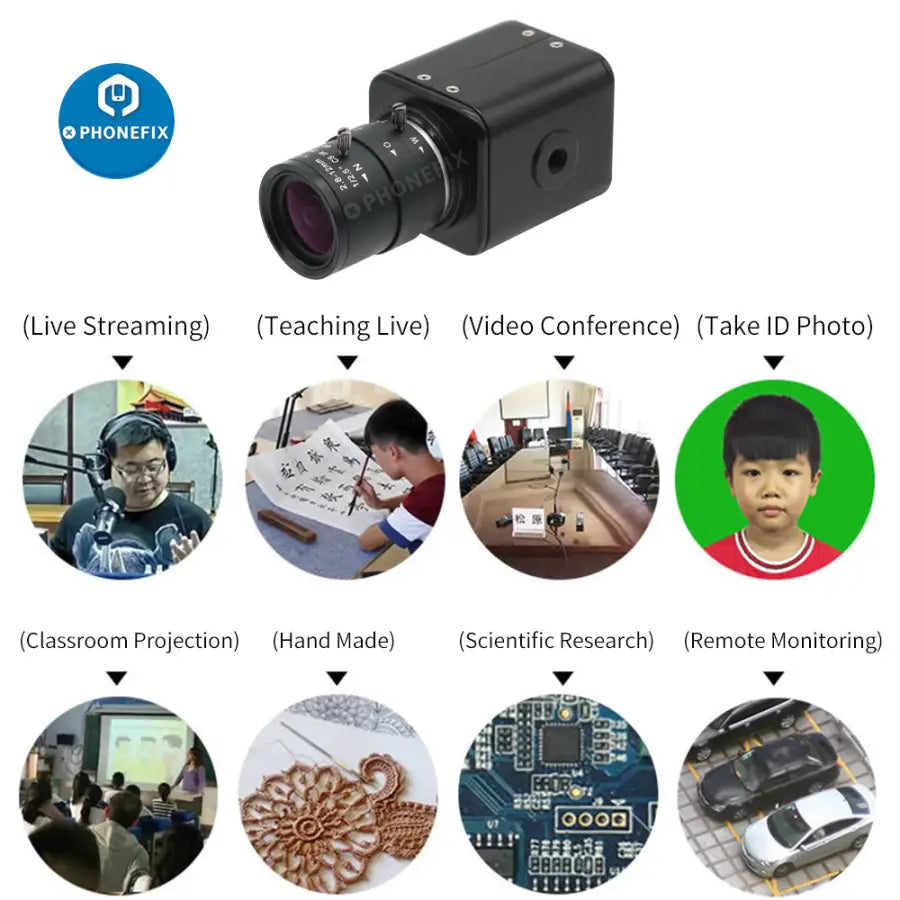 HD 1080p 2.0 MP CMOS Video Recording Live Stream Cameras HDMI Live USB Camera, Supports Tf Card Storage. Equipped with HD 3MP 1/2.5" F1.4 2.8-12mm CS Mount Manual Zoom Lens for Live Broadcast.