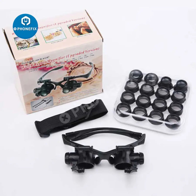 Watch repair magnifier eye glasses magnifying 10x 15x 20x 25x Multipower with 2 LED light w ith interchangeable headband