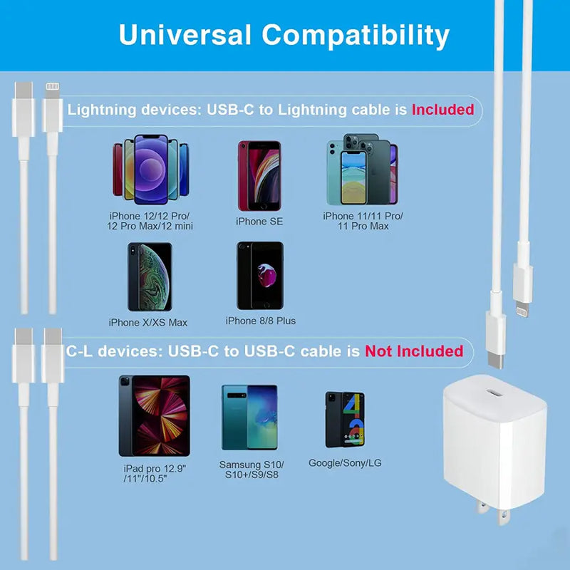 Package List : 1 x 20W USB C Charger 1 x 4ft USB C to Lightning cable