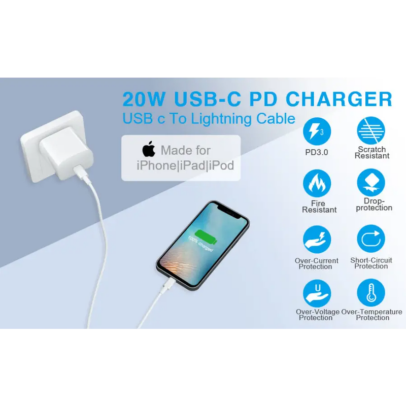 20W USB C Fast Wall Charger with MFI Certified 4ft USB C to L Charging Cable, brings you new high-speed lifestyle