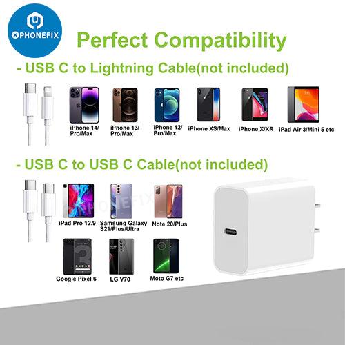 Broad Compatibility: 20w USB C power adapter could work with most devices support PD protocol. Such as iPhone , iPad Mini , iPad Pro AirPods, iWatch, Android phones and more.