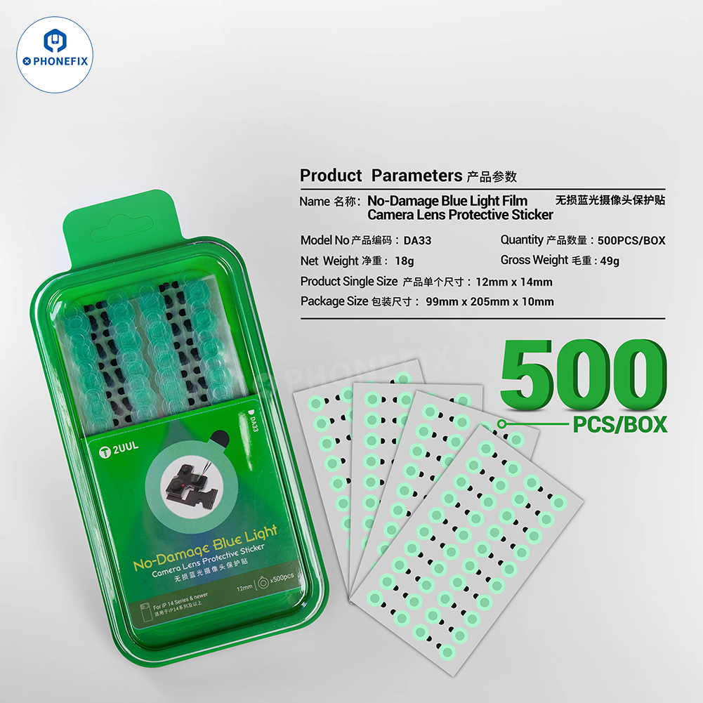 2UUL DA33 Camera Lens Protective Sticker No Damage Blue Light Film for iPhone 14/15/16/17 Pro Max camera protection. 2UUL DA33 Camera Lens Protective Sticker with hollow design protects the blue light film, no adhesive residue, preventing dust and scratches. Suitable for protecting mobile phone cameras during repair.