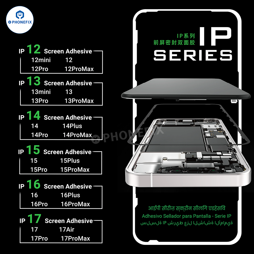 2UUL SA Series Pre-cut Double-sided Screen Sealing Adhesive for iPhone 12-17 Pro Max Screen Sealant. 2UUL iPhone LCD screen frame sealing waterproof tape (5pcs/pack) for iPhone repair, by using heat pressing sealing, perfectly fitted and sealed the iPhone screen bezel, restoring airtightness. Suitable for iPhone 12/13/14/15/16/17 series.