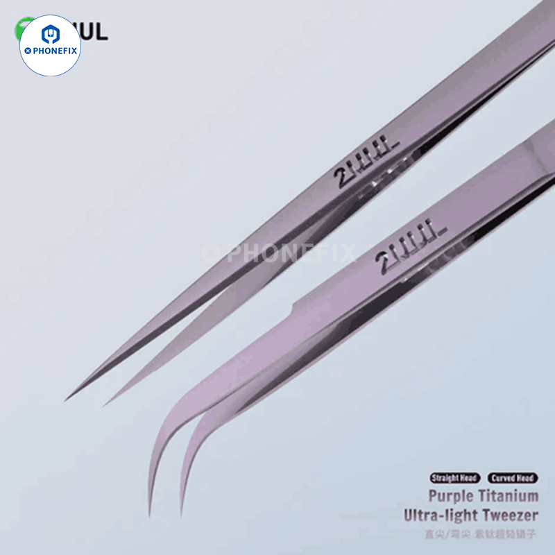 2UUL TW21 TW22 Non-magnetic Stainless Tweezers Mobile Phone Motherboard Repair Tool. 2UUL Ti21 Ti22 Purple Titanium Ultralight Tweezers for mobile phone PCB CPU SMD chip repair. Easy to pick up solder wires, chips, and other small parts.