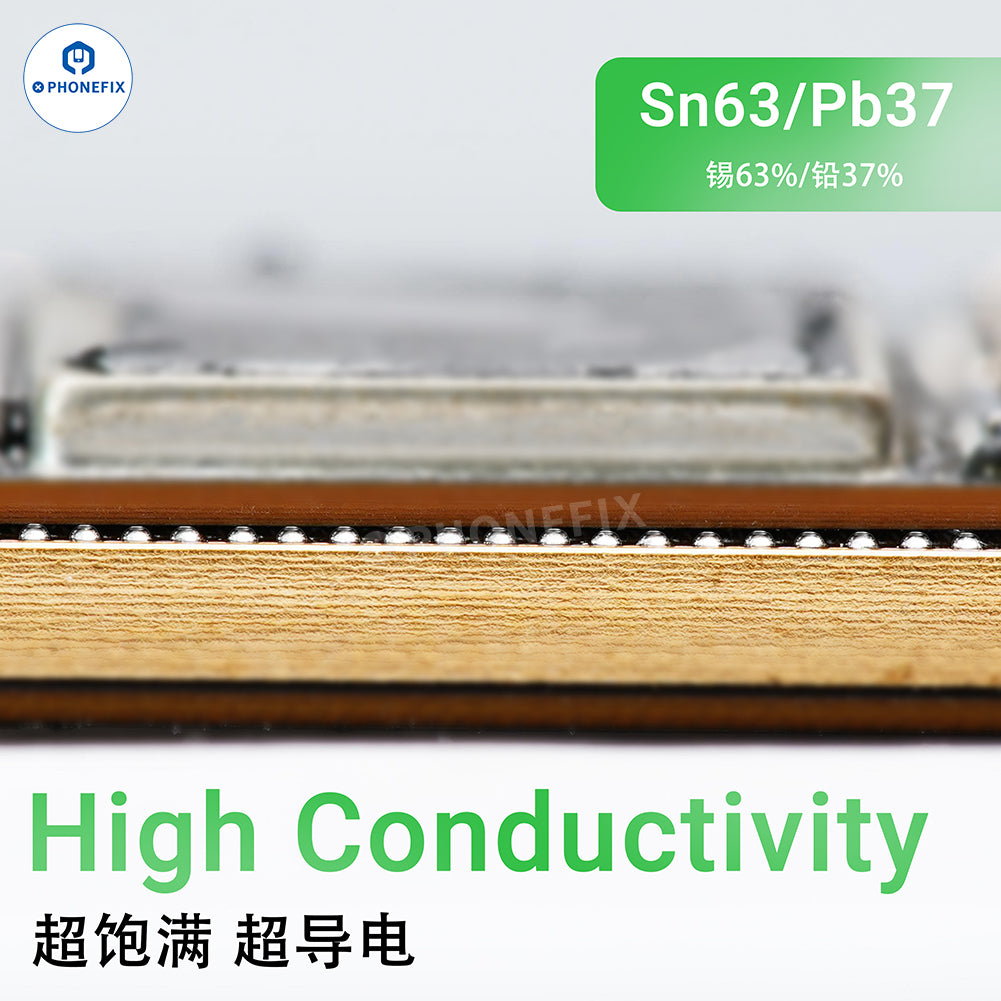 2UUL PadBall Solder Balls for Solder Pad Rework Repair. 2UUL PadBall Solder balls Sn63/Pb37 high conductivity for soldering missing solder joints on iPhone and Android Phones motherboard solder pad. Uniform size solder balls can quickly repair the missing solder joints on the mobile phone motherboard circuit board, effectively improving the efficiency of mobile phone repair.