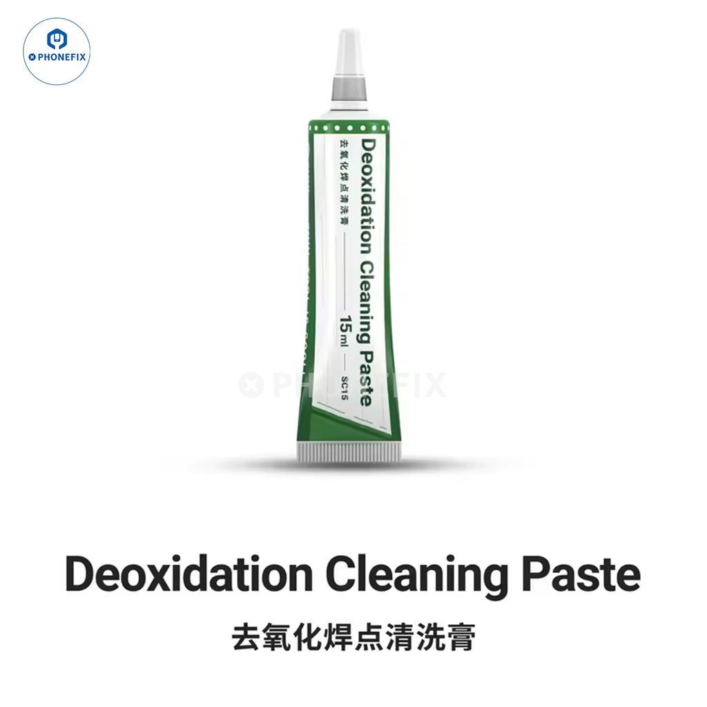 2UUL SC15 Deoxidation Cleaning Paste is used for mobile phone repair, PCB solder joint cleaning, and PCB oxidation repair. 2UUL SC15 Cleaning Paste quickly removes oxides from solder joints, aiding tinning, improving soldering quality, and enhancing solder paste adhesion. It is suitable for a variety of applications, including mobile phone motherboard repair, electronic product PCB repair, chip reballing, and micro soldering.