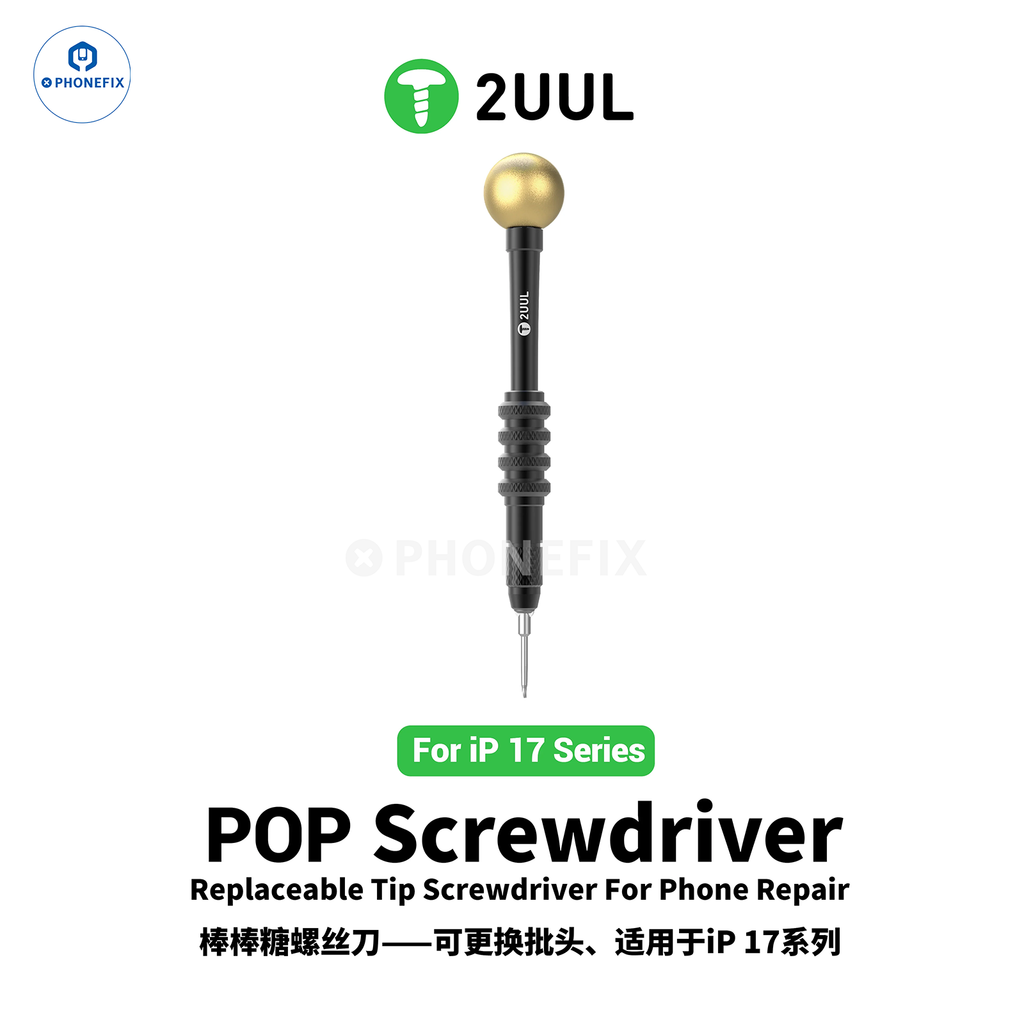 2UUL SD87 POP Screwdriver with interchangeable 4IP bits for iPhone 17/Air/17 Pro/17 Pro Max bottom screws removal to finish the disassembly and assembly. Its lollipop-shaped handle provides a comfortable grip, making it ideal for DIY repairs, disassembly, and precision maintenance of iPhone 17 series devices.