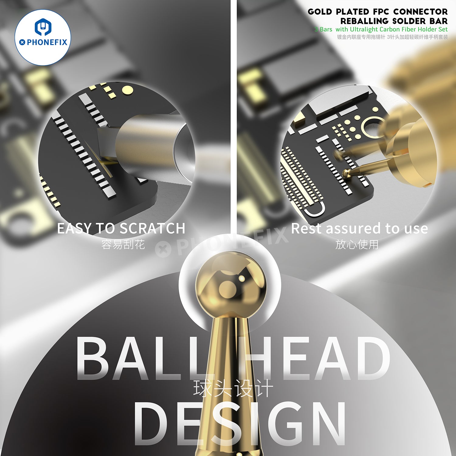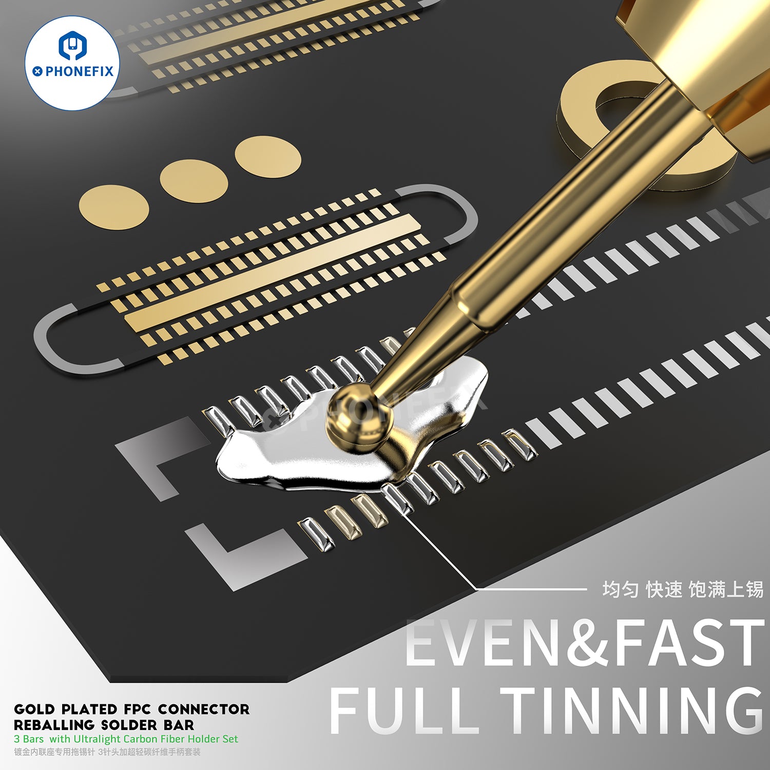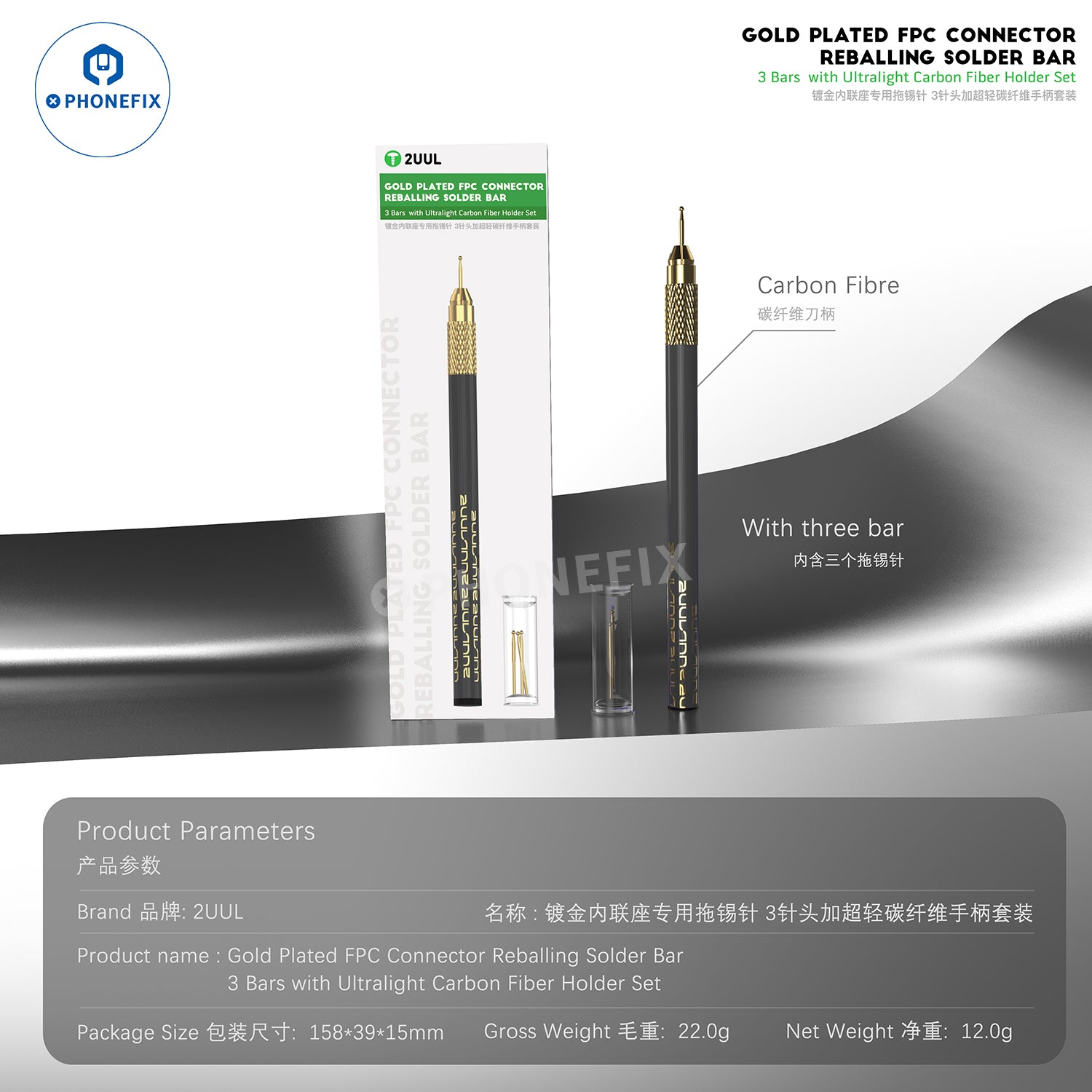 Model: 2UUL SC98 Gold PlatedFPC Connector Reballing Solder Bar 3 Bars with Ultralight Carbon Fiber Holder Set.