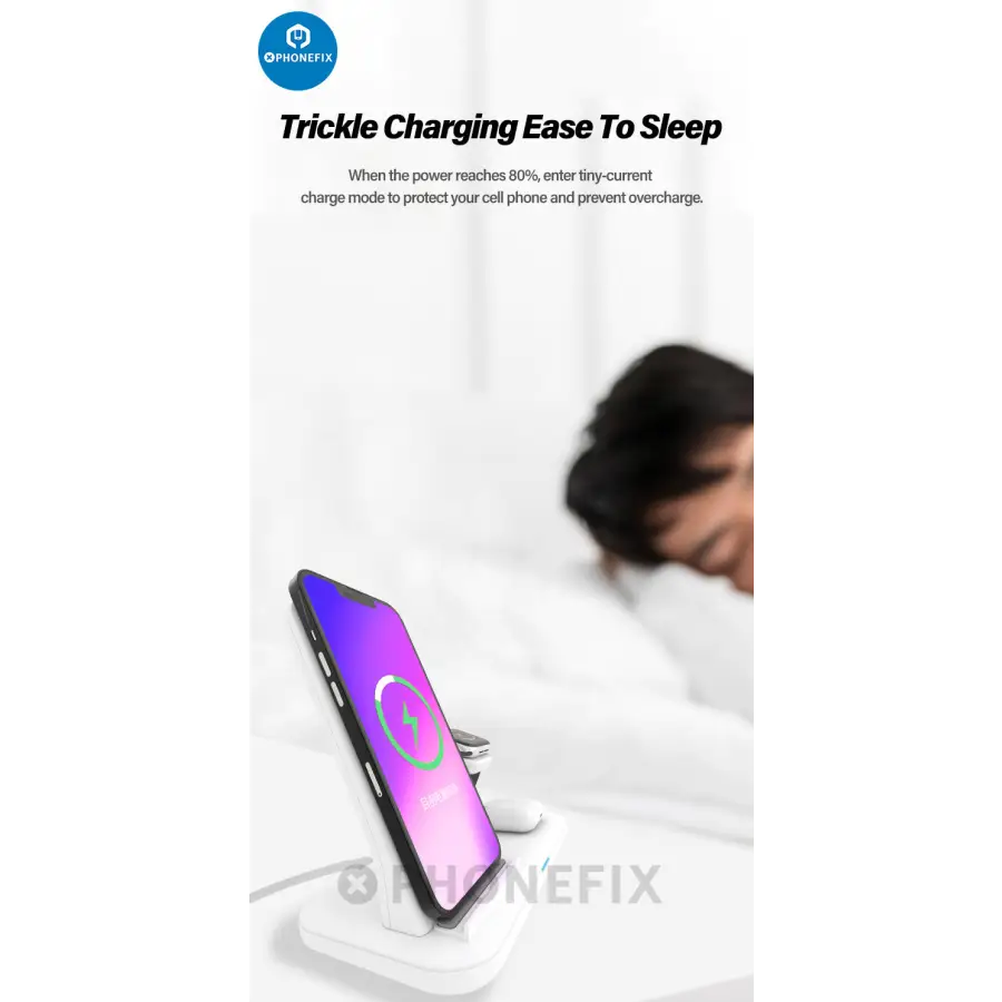 Main Features: 1. 3 in 1: 36W High Power wireless charging station support Mobile Phone and Watch/Bluetooth Headset Wireless Charging Simultaneously. Speed up 50%, Save 30 Minutes. 2. Safe Charging: Built-In Safeguards Against Overcharge, Overcurrent And Overvoltage Protection, Temperature Control, Foreign Object Detection, Fully Protect Your Phone And Apple Watch, Airpods Pro. 3. Case-friendly: The 3 in 1 wireless charging station are compatible with most cases up to 4mm. There’s no need to take off your case from your phone. 4. Widely Compatible: The Multifunctional Charging Stand Spport iPhone/Micro/Type-c Interfaces Can Charge For Almost All Mobile Devices, Such As Iphone, Ipad, Samsung, Lg, Htc, Huawei, Sony Smart Phones, iWatch 5/4/3/2/1 And Airpods/Airpods Pro.
