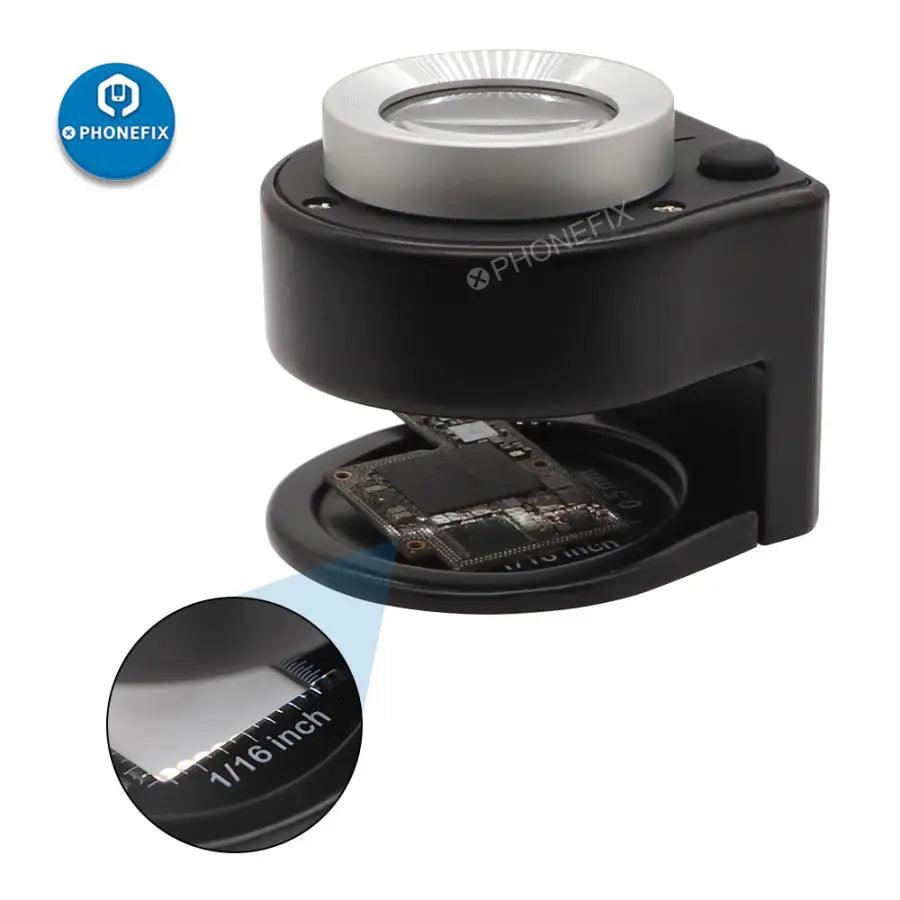 30X Handheld LED Optical Glass Scale Magnifier Magnifying Glass Jewelry Loupe with LED Light UV Illuminated Lamp
