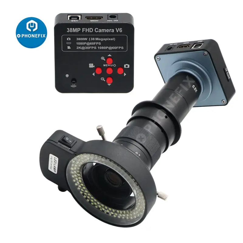 38MP 1080P FHD HDMI USB Microscope Camera 180X C-Mount Lens Light