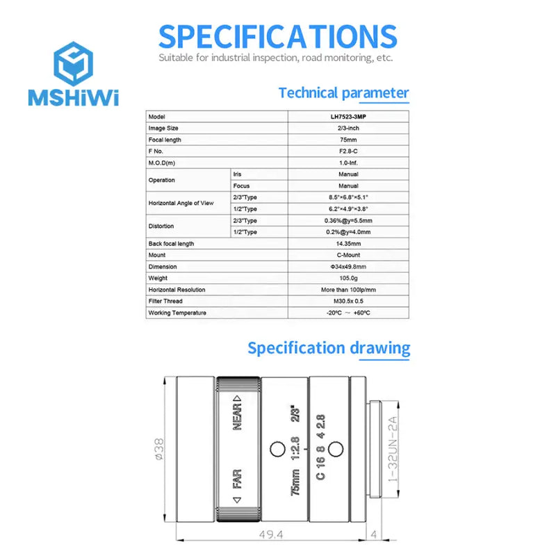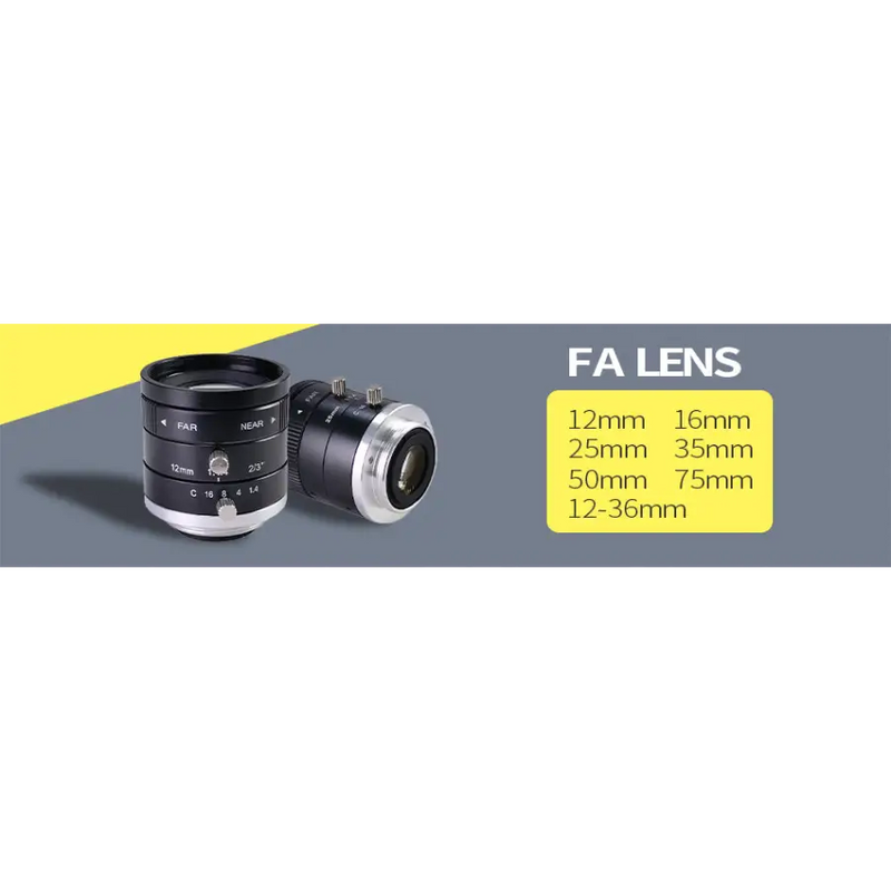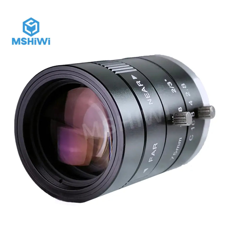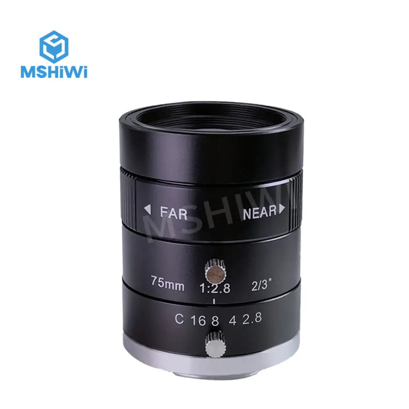 3MP 75mm Manual FA Lens C-mount F2.8 Aperture 2/3" Manual Focus Lens High-contrast ITS Camera Lens Industrial Cameras lens. Standard FA industrial C Mount Fixed focus, manually adjustable aperture Machine Vision Lens.